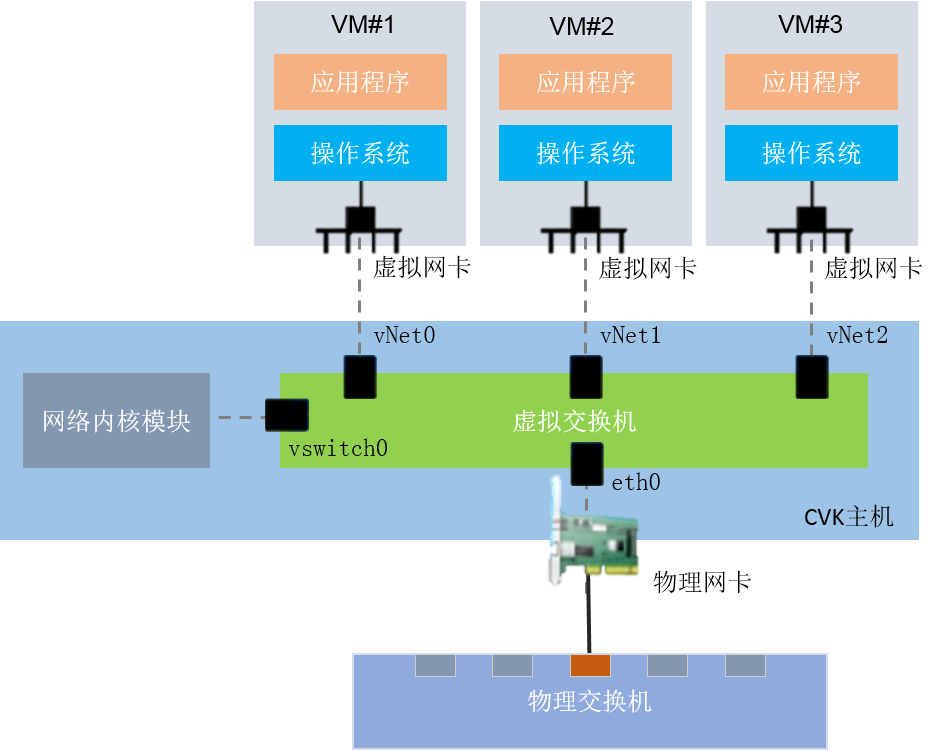 内核端口(如图-1中vswitch0):连接CVK主机操作系统的网络内核模块。