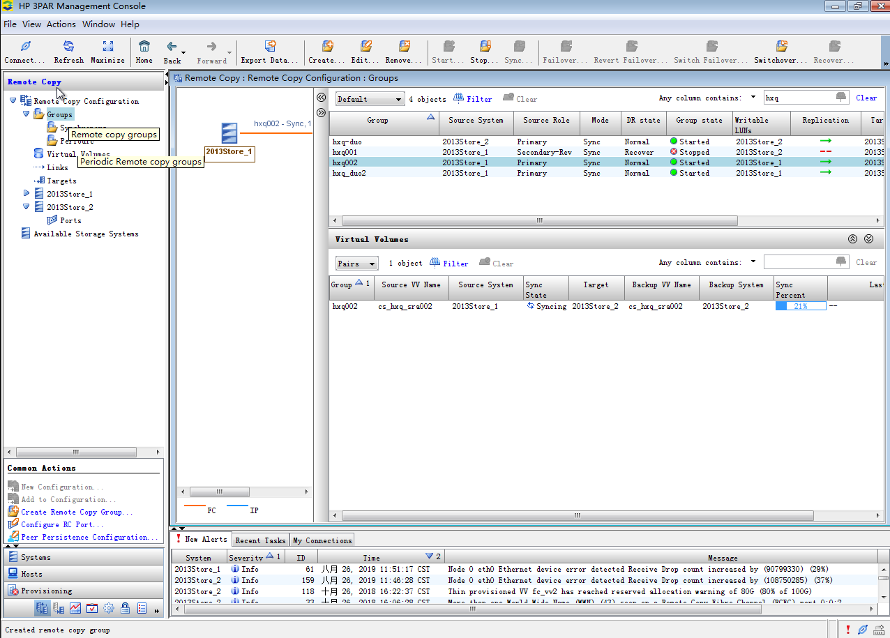 在导航树Groups可以查看创建好的Remote Copy的角色状态和卷信息。