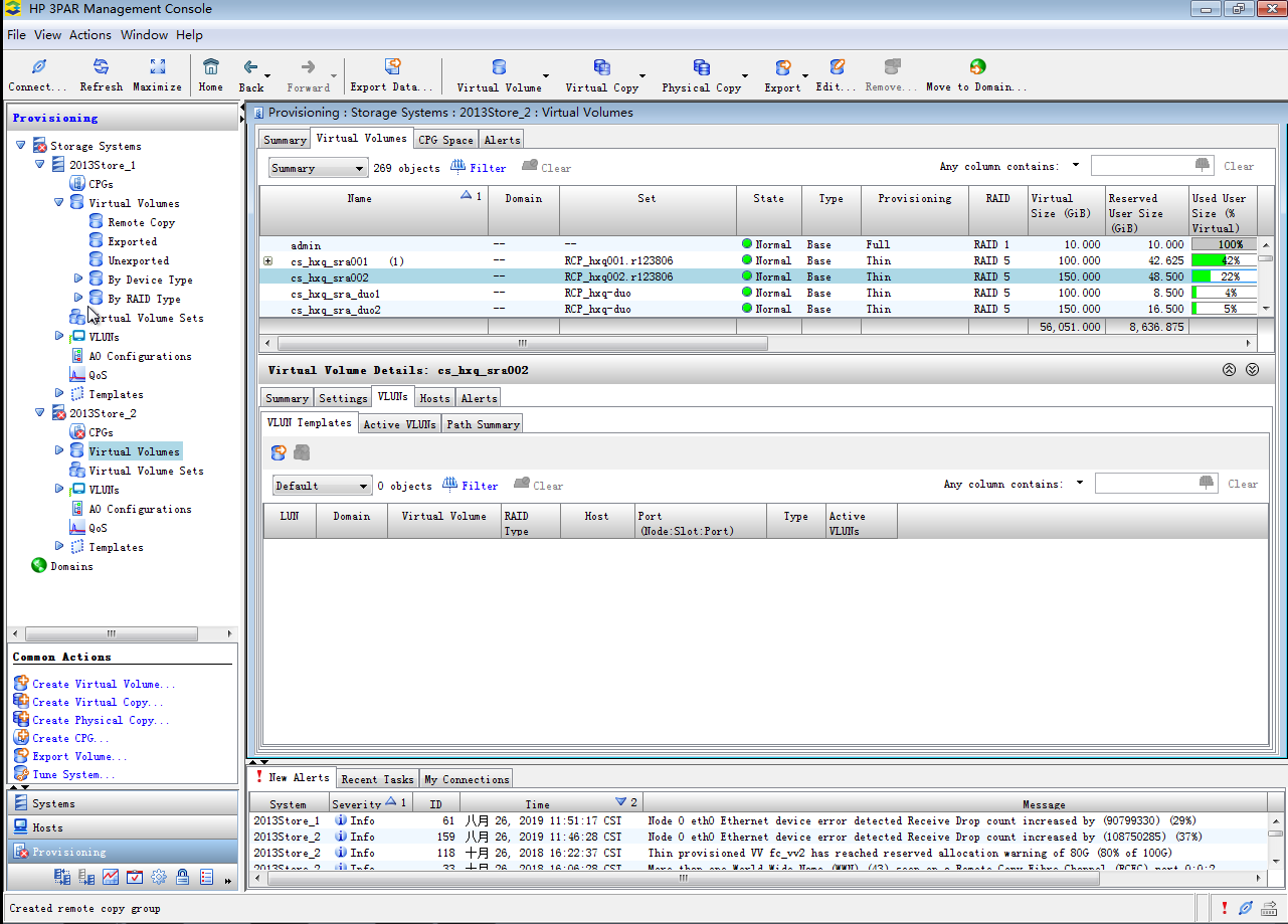在3PAR上创建remote copy组时,保证组内有映射关系的LUN的wwn一致。