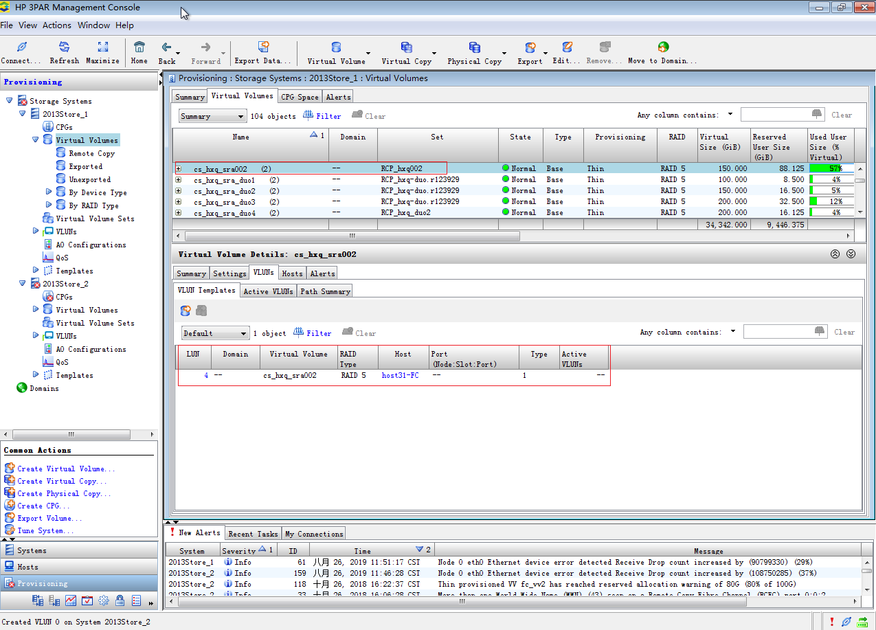 2013Store_1上的存储卷cs_hxq_sra002映射给主机host31。