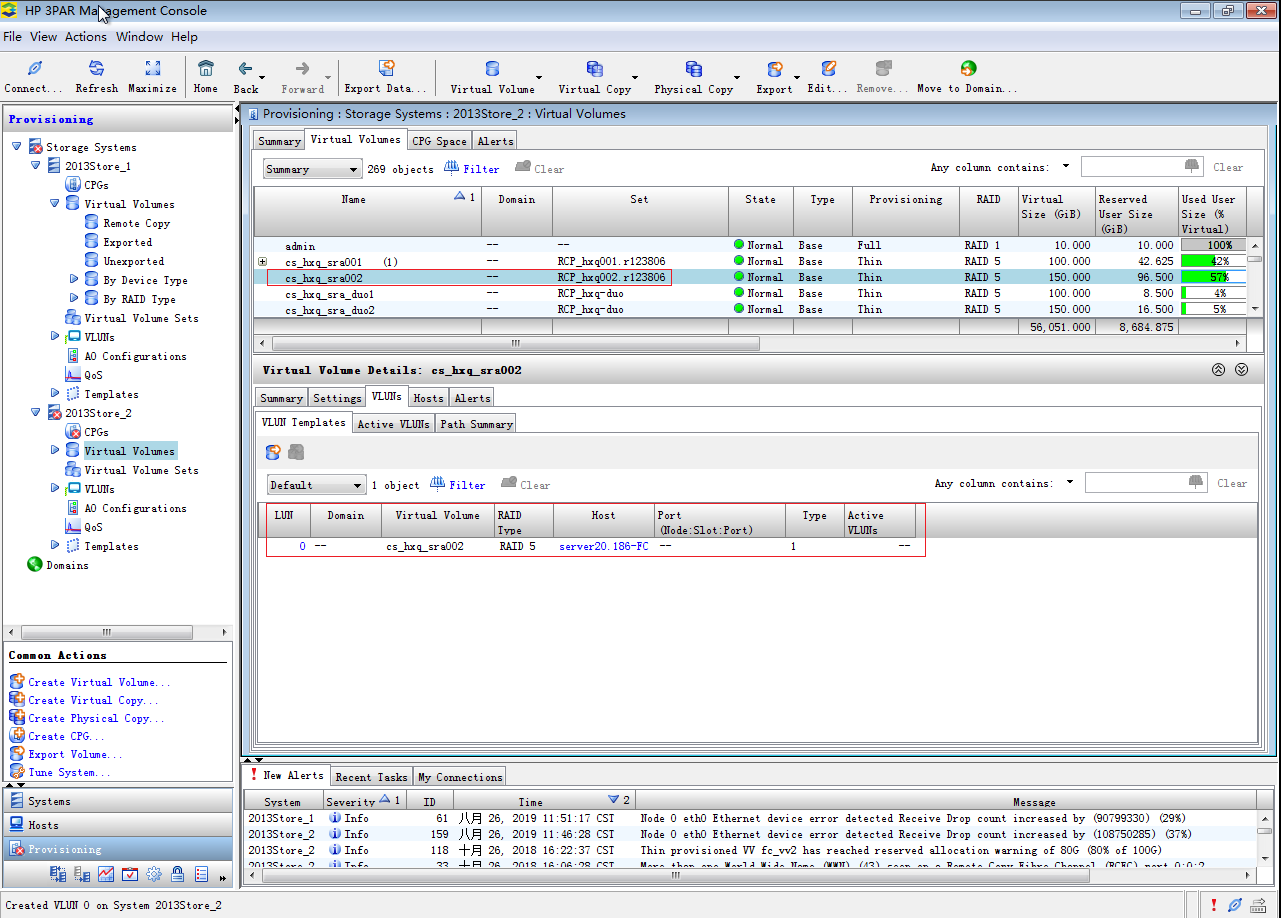 2013Store_2上的存储卷cs_hxq_sra002映射给主机host20。