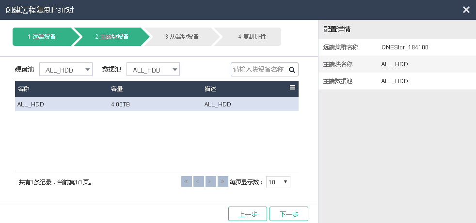 在选择从端块设备页签,依次选择硬盘池和数据池,然后选择一个从端块设备,单击<下一步>按钮。