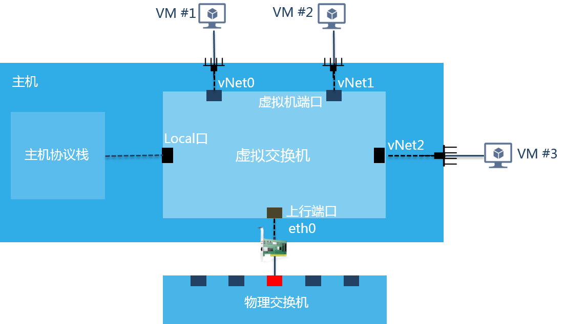 虚拟机端口:连接虚拟机的虚拟网卡。