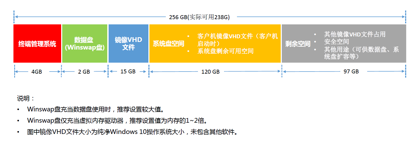 在教育场景使用时,若有多个镜像切换需求,还需规划其他镜像VHD文件占用空间,并在剩余空间中为其预留。