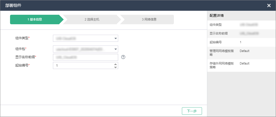 组件名称的起始编号和名称前缀一起构成的组件的完整名称,部署完成后组件名称将以此编号开始依次加1显示。 |