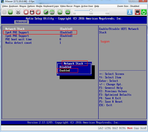 某些型号的曙光服务器,BIOS中Network Stack值缺省为Disabled,这样会导致服务器发现失败,需要手动修改为Enabled,并确保Ipv4 PXE support值为Enabled。