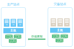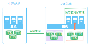 演练测试通过挂载恢复站点的LUN,并将其作为恢复站点的数据存储来实现。