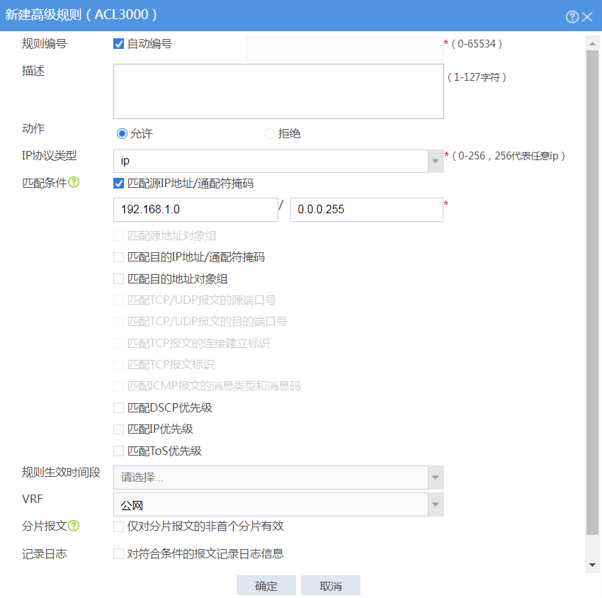 图-3 为编号为3000的ACL添加规则