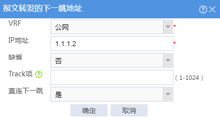 # 单击“设置报文转发的下一跳地址”下方的<确定>按钮,配置报文转发的下一跳地址,配置如下图所示。