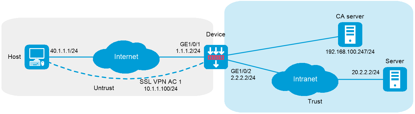 [Device-SSLVPN-AC1] ip address 10.1.1.100 24