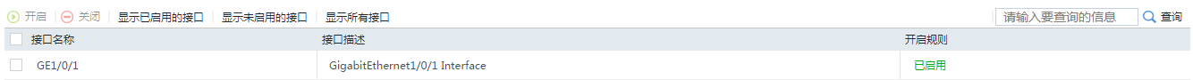 # 选择“策略 > 接口NAT > IPv4 > NAT静态转换 > 策略应用”,勾选GE1/0/1,单击开启按钮,结果如下图所示。