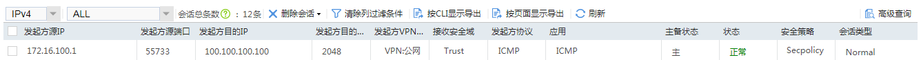 在Device上,选择“监控 > 会话列表”,查看NAT的会话信息。