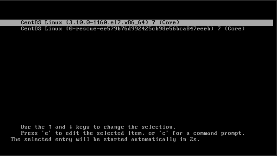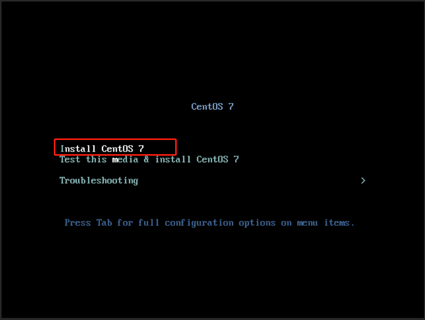首次启动虚拟机,系统默认进入iso界面,选择安装选项【Install CentOS 7】,输入回车。