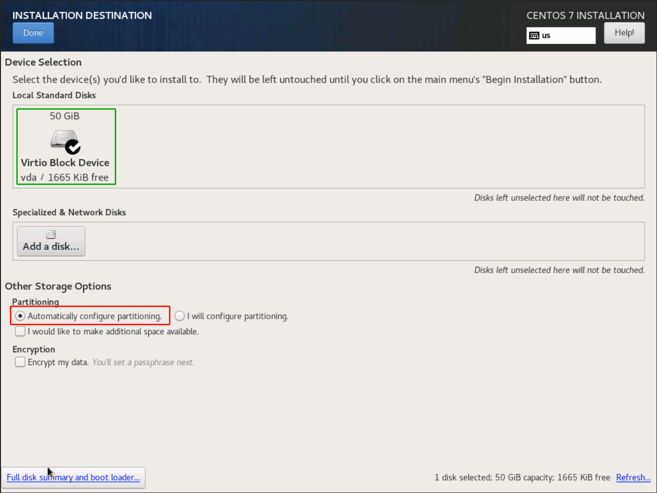 若使用自动分区,直接点击左上角的【Done】完成即可。