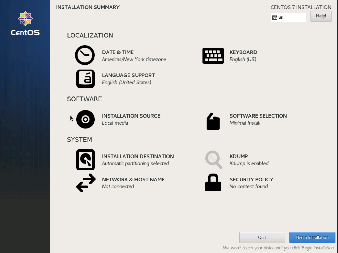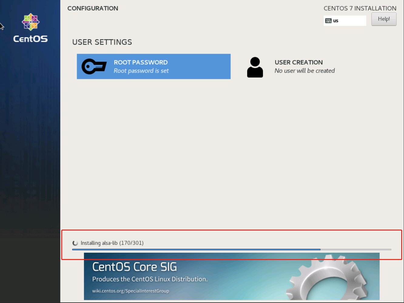 安装项配置完成后,点击Begin Installation 按钮进行系统安装。