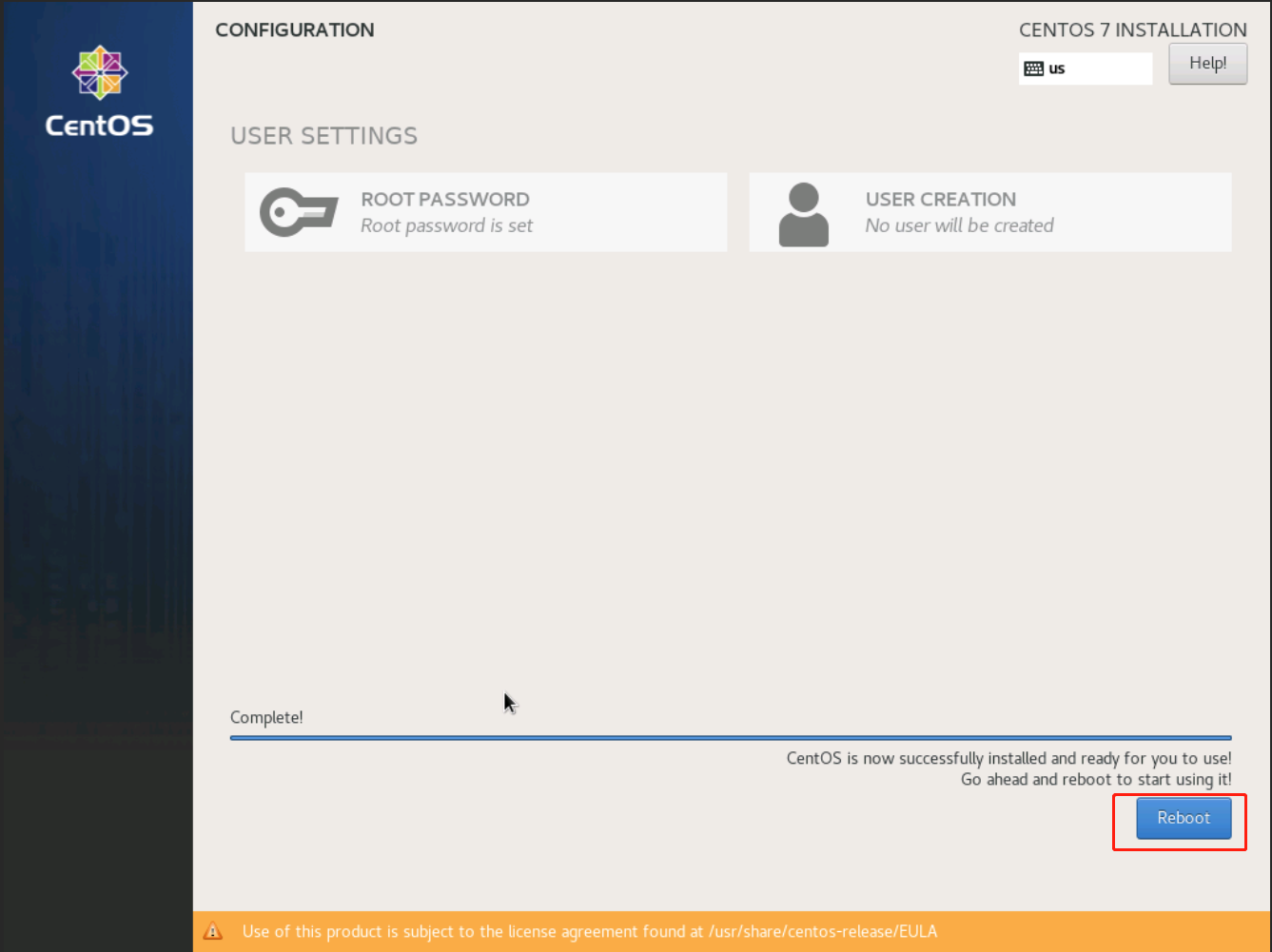 系统安装完成之后,在当前界面点击【Reboot】重启虚拟机,进入系统。