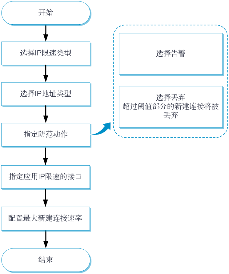 同一个接口上,基于源IP地址的新建会话限速功能与基于目的IP地址的新建会话限速功能不能同时开启。