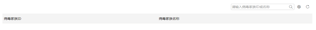 进入“病毒家族”页面,查看病毒家族ID及病毒家族名称信息,支持输入病毒家族ID或名称检索病毒家族信息。