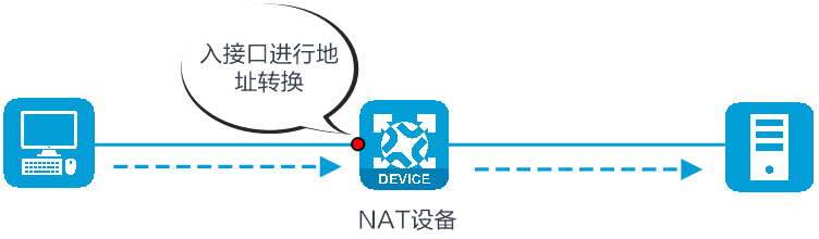 NAT地址转换中涉及入方向和出方向两个概念,下面以两个示意图为例进行说明。