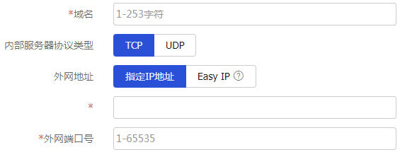 外网地址 | 指定IP地址 | 表示内部服务器提供给外部网络访问的IP地址内部服务器的外网地址 |