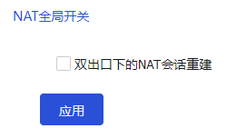 选择<全局配置>页签,勾选“双出口下的NAT会话重建”,并单击<应用>,开启双出口下的NAT会话重建功能。