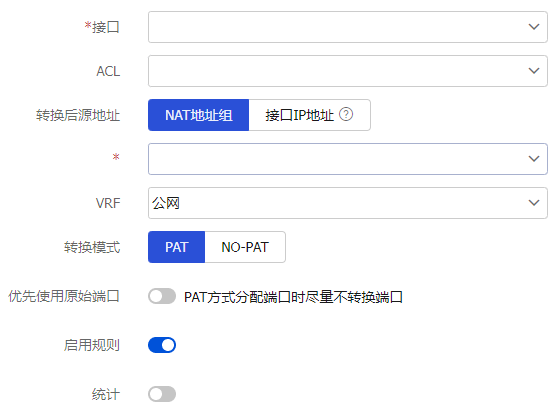 接口 | NAT转换应用的接口,通常应用在外网侧接口上 |