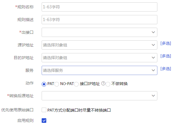 启用规则 | 启用该NAT地址转换规则 |