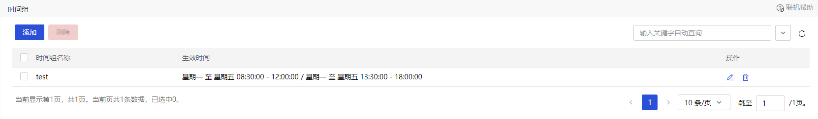 单击导航树中[上网行为管理/时间组]菜单项,进入时间组配置页面。