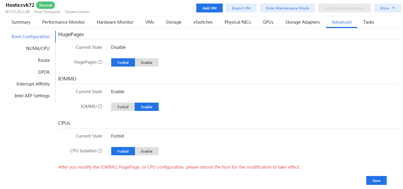 From the left navigation pane, select Host Pool Name > Cluster Name > Host Name or Host Pool Name > Host Name.