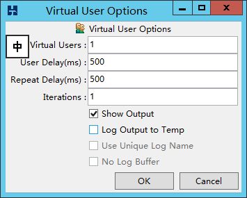 Double-click the Options node under the Virtual User node and enter the number of virtual users.