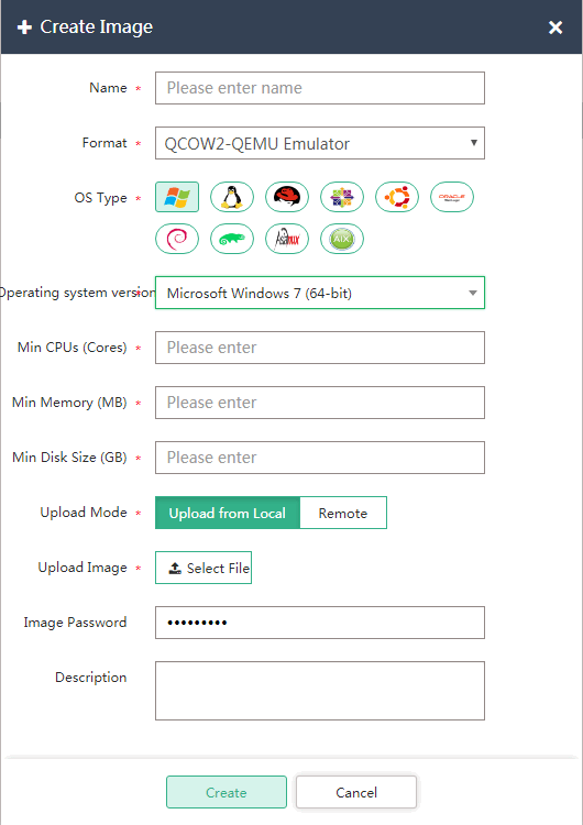 If you select Upload from Local, click Select File, and then select an image file from a local directory.