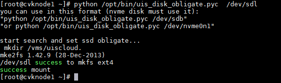 On each host for UIS Cloud deployment, run script python /opt/bin/uis_disk_obligate.pyc /dev/sdx to mount an SSD or NVMe disk to /vms/defaultPool_cloudos.