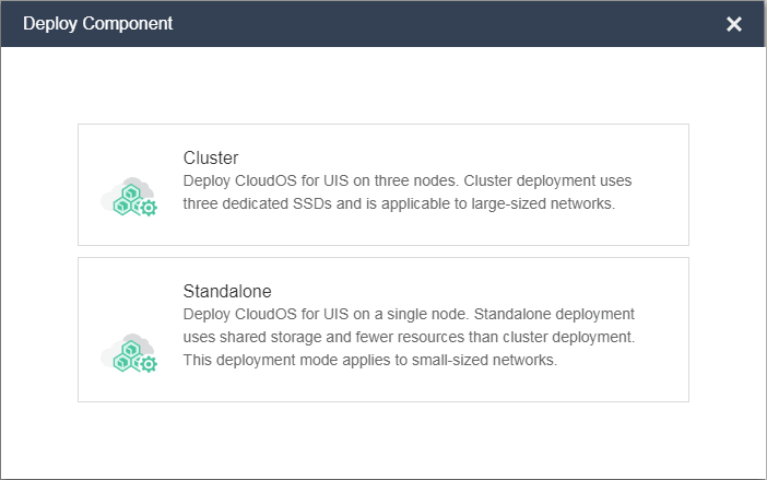Select a component type. The component type is fixed at UIS_CLOUDOS. |