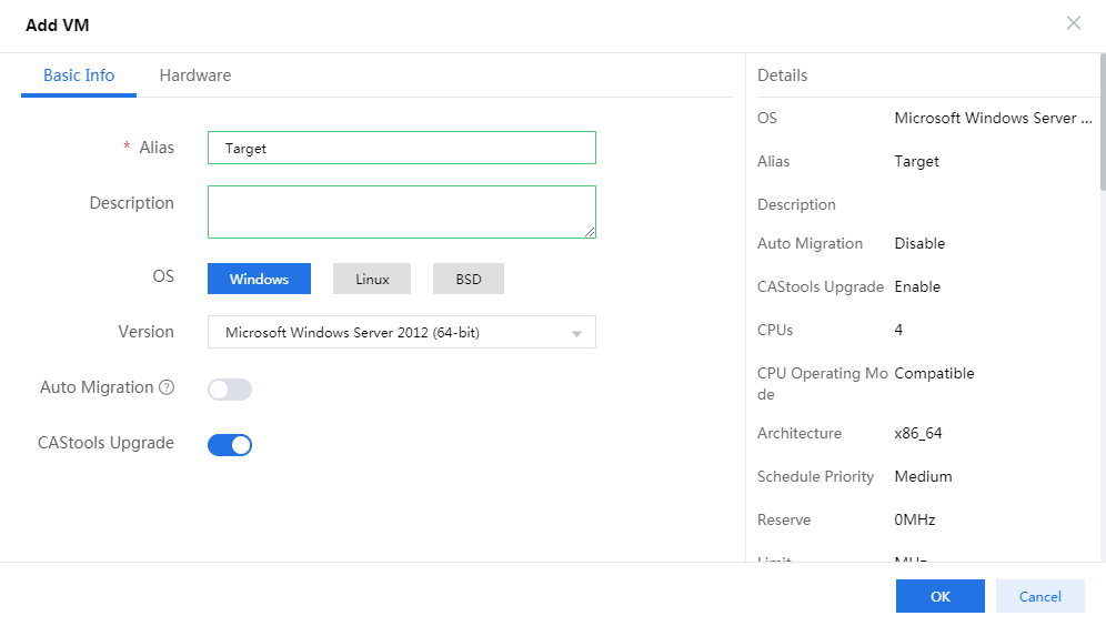 Create the destination VM on CVM as shown in Figure-1. Make sure both the available disk size and total disk size of the destination VM are equal to or larger than the disk sizes of the source device.