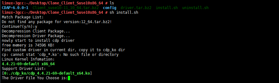 Select the matching driver package at the prompt and enter y.
