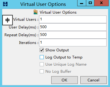 Double-click the Options node under the Virtual User node and enter the number of virtual users.