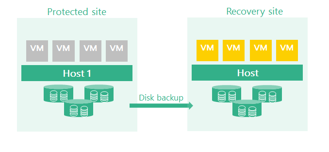 A disk backup protection group protects a set of VMs or bare metal nodes installed with the disaster recovery client by synchronizing data of the protected objects automatically in real time. A disk backup protection group can operate in one of the following modes depending on the services running on its protected objects: