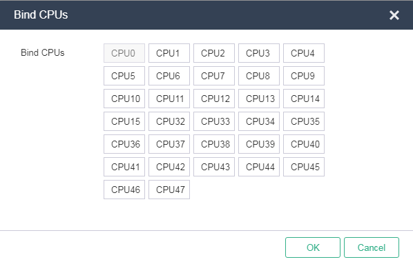 for each NUMA node, select the isolated CPUs specified in "Configure host boot options" as the CPUs to bind, and then click OK.