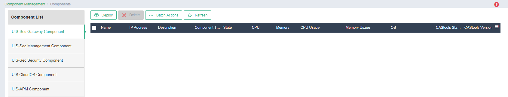 After a successfully deployment, you can view the deployed UIS-Sec gateway component on the Component Management > Components page.