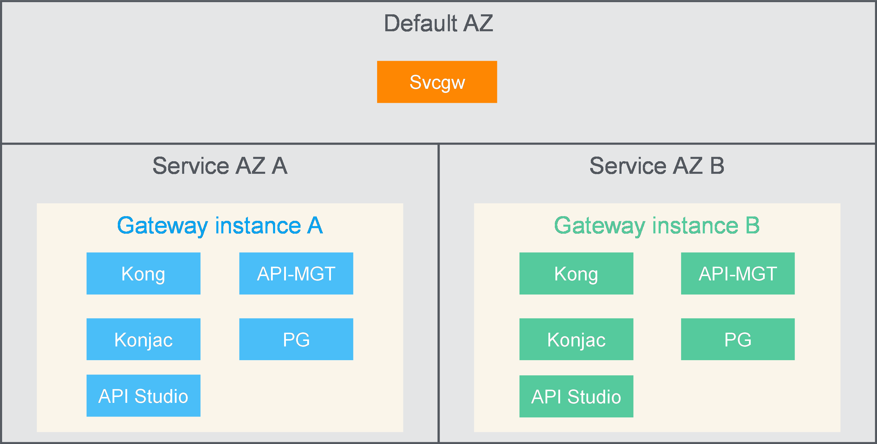 As shown in Figure-1, a service gateway contains the following components: Kong (core component), API-MGT (API management component), Konjac (protocol switchover component), PG (database component), and API Studio (API parameter visualization component).