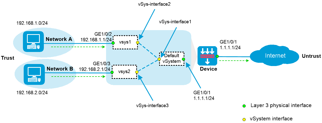[Device-security-zone-Trust] import interface vsys-interface 1