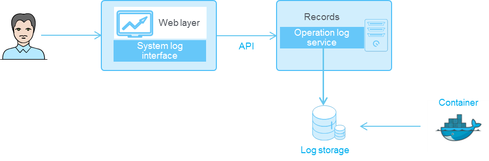 When a user performs operations in the system, such as logging in and configuring services, the system calls the interface of the operation log service and records the operation request. The logs are displayed on the operation log page.