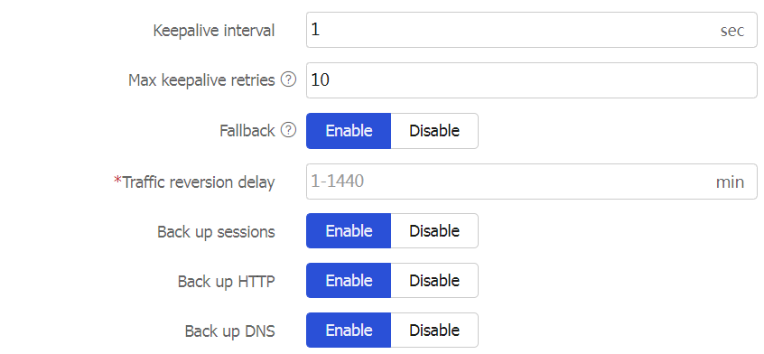 Fallback | Enable this feature for traffic to be switched back to the original active device upon its recovery. |