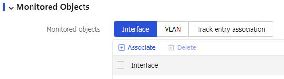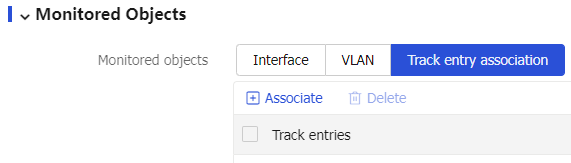 Track entry association | Select the track entries to be monitored by the hot backup system. If one of the monitored track entries becomes Negative, the hot backup system performs an active/standby switchover and switches traffic to the new active device to ensure service continuity. |