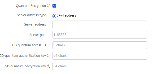 GD-quantum authentication key | This key is used to authenticate the device identity on the GD-quantum server, and corresponds one-to-one with the device's GD-quantum access ID. Contact the administrator of the GD-quantum server to obtain the authentication key. |