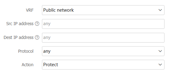 Dest IP address | Specify the destination IP address for the protected data flow. An IP address or subnet address is supported. To not limit the destination IP address, use the default value |