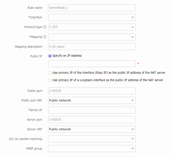 Server VRF | VRF to which the NAT server belongs. The default setting is Public network. | |
