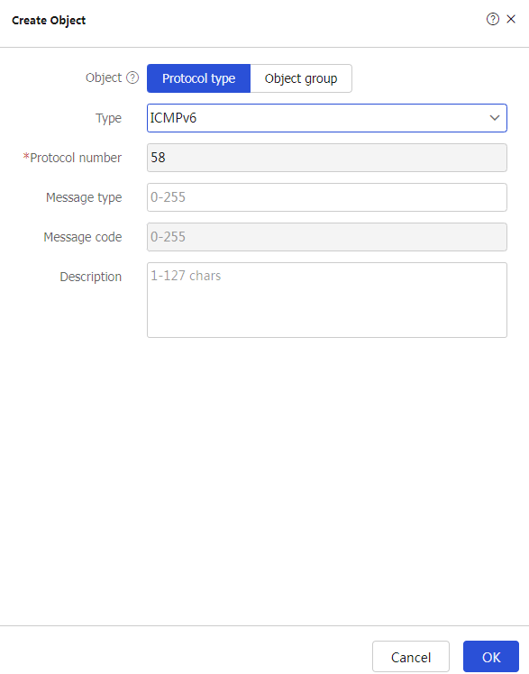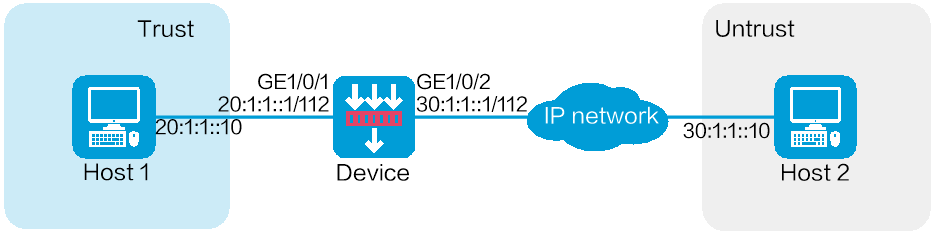 As shown in Figure-1, configure a service object group on the device to allow Host 1 to communicate with Host 2 through ICMPv6 in a specific time period.