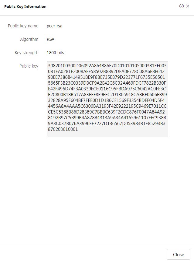 When you manually enter the peer host public key, make sure the entered key is in the correct format. To obtain the peer host public key in the correct format, display the public key on the peer device and record the key. The format of the public key displayed in any other way might be incorrect. If the key is not in the correct format, the system discards the key and displays an error message.
