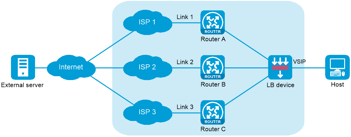 As shown in Figure-1, outbound link load balancing contains the following elements: